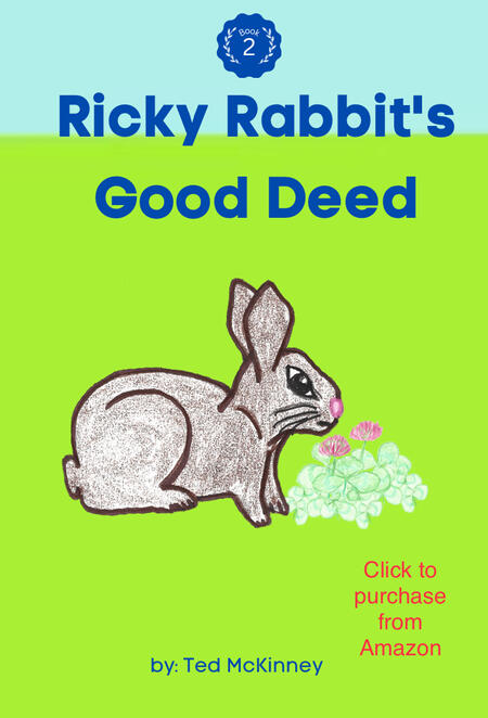 Ricky Rabbit’s Good DeedIt was spring and Ricky rabbit was tired of eating all the frozen nibbles he had eaten all winter long. He really wanted the fresh spring clover that grew in Tuffy the Terrier’s yard.The problem was, Tuffy the Terrier was usually too friendly with Ricky and his loud bark scared him.He was as happy as he could be. The sun was shining and the air was warm. He hopped down the forest path. Coming up the path was his good friend Chelsea the Chipmunk. “Where are you going, Ricky?” asked Chelsea. Ricky explained that he was hungry for the sweet clover from Tuffy’s yard, but he was afraid of going there while Tuffy was home and outside.Ricky asked Chelsea what she was doing. “I am looking for some seeds to eat, but seeds are hard to find this soon after winter,” said Chelsea.Ricky thought for a moment. “Well, I can help with that!” exclaimed Ricky. “Follow me!”